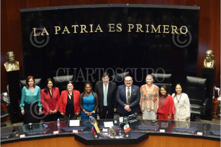 CIUDAD DE MÉXICO, 10ABRIL2025.- Francia Elena Márquez Mina, vicepresidenta de la República de Colombia, acompañada de Imelda Castro Castro, Gerardo Fernández Noroña, Carla Guadalupe Toledo Zamora y Jorge Carlos Ramírez Marin, senadores de la mesa directiva, durante su participación en la Sesión Solemne en el Senado de la República. FOTO: GRACIELA LÓPEZ/CUARTOSCURO.COM