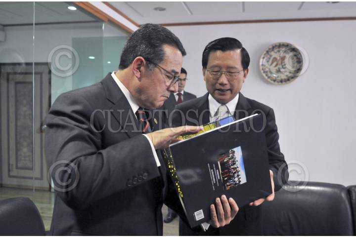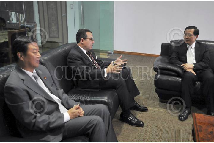 MÉXICO, D.F., 20FEBRERO2013.- Francisco Arroyo Vieyra, presidente de la Cámara de Diputados, recibió en su oficina a Qiang Wei, presidente de la Asamblea Popular Provincial de Qinghai, China. Atestiguó el embajador de ese país en México, Zeng Gang. FOTO: CUARTOSCURO.COM
