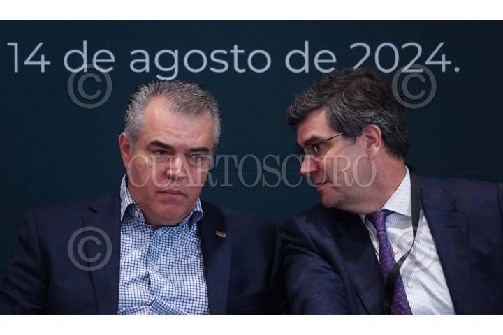 CIUDAD DE MÉXICO, 12AGOSTO2024.- Francisco Cervantes, presidente de Consejo Coordinador Empresarial, y Máximo Vedoya, líder de CEO Ternium, conversaron durante la inauguración de la primera edición de la Rueda de Negocios “Las Mipymes en las cadenas de valor: Dispositivos Médicos de Alta Tecnología”, realizada en la Torre Ejecutiva de la Secretaría de Economía. FOTO: GRACIELA LÓPEZ /CUARTOSCURO.COM