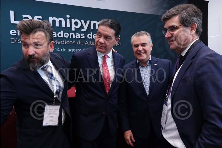 CIUDAD DE MÉXICO, 12AGOSTO2024.- Othon Valverde, subsecretario de Industria y Comercio; Francisco Cervantes, presidente de Consejo Coordinador Empresarial, y Máximo Vedoya, líder de CEO Ternium, conversaron durante la inauguración de la primera edición de la Rueda de Negocios “Las Mipymes en las cadenas de valor: Dispositivos Médicos de Alta Tecnología”, realizada en la Torre Ejecutiva de la Secretaría de Economía. FOTO: GRACIELA LÓPEZ /CUARTOSCURO.COM
