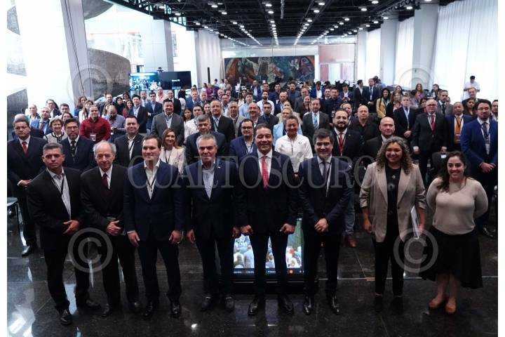 MONTERREY, NUEVO LEÓN, 20MARZO2025.- Claudia Sheinbaum, presidenta de México, acudió como invitada a la 81 Asamblea Anual de la Cámara de la Industria de Transformación de Nuevo León (CAINTRA). La acompañan: Francisco Cervantes, presidente del CCE; Jorge H. Santos Reyna, presidente de la CAINTRA; Máximo Vedoya, presidente saliente de la CAINTRA, y Altagracia Gómez, oordinadora del Consejo Asesor para el Desarrollo Económico Regional y Relocalización. FOTO: PRESIDENCIA/CUARTOSCURO.COM