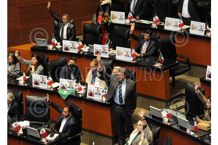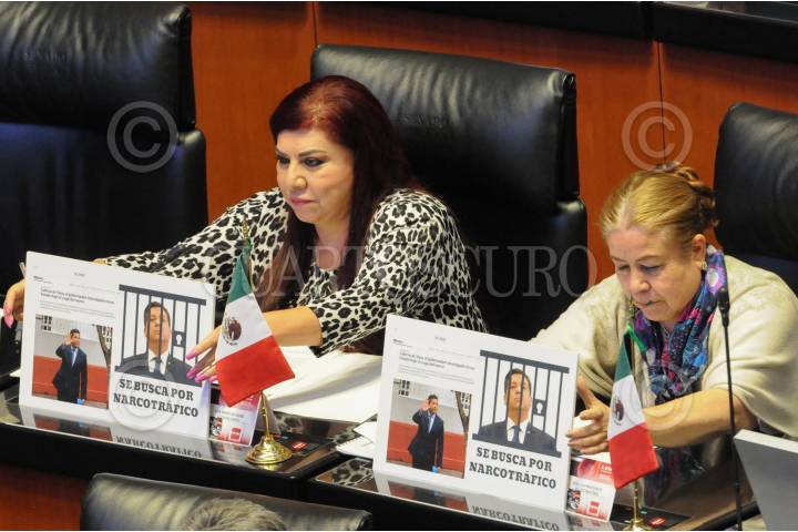Ricardo Monreal y la bancada de Morena aprueba la solicitud de Américo Villarreal de pedir licencia. Los senadores guindas mostraron pancartas en contra del actual gobernador Francisco García Cabeza de Vaca.