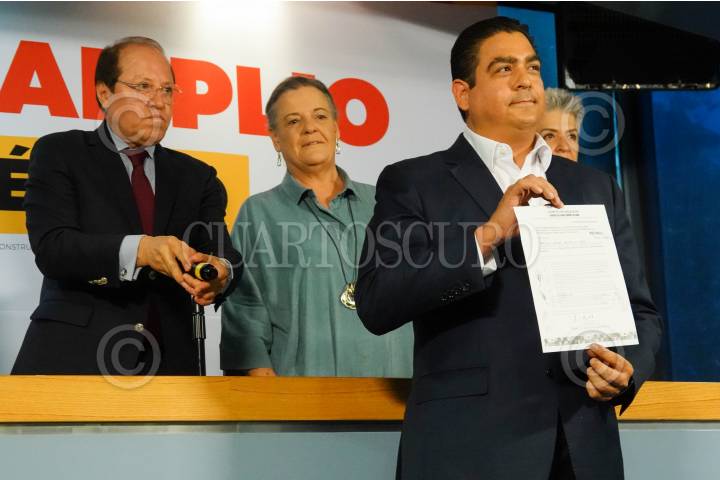 Ismael García Cabeza de Vaca durante el registro de Francisco García Cabeza de Vaca como aspirante a candidato por el Frente Amplio por México.