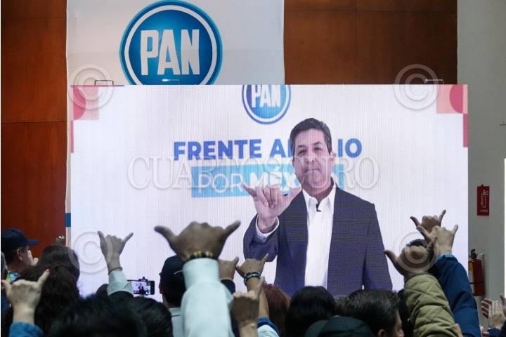 Francisco García Cabeza de Vaca, ex gobernador de Tamaulipas, ofreció un mensaje dirigido a sus simpatizantes vía zoom durante su registro como aspirante para la candidatura para la presidencia por Frente Amplio por México en las inmediaciones del PAN