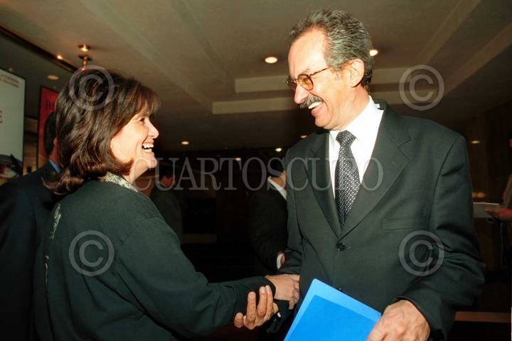 Francisco Gil Díaz "cotorrea" con Virginia González Torres antes del Congreso del Consejo Mexicano del Ahorro y Credito Popular. FOTO: Christian Palma/CUARTOSCURO.COM