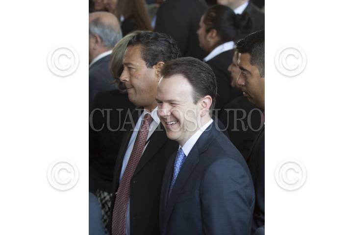 MÉXICO, D.F., 30NOVIEMBRE2012.- Luis Videgaray, Juan José Guerra Abud, Idelfonso Guajardo, Alfonso Navarrete Prida, Francisco Guzmán Ortiz, Mercedes, Juan López y Enrique Martinez y Martinez, fueron nombrados para ocupar los cargos de SHCP, SEMARNAT, SE, SSA, STyPS, Coordinador de Asesores y Secretaria de Agricultura, Ganaderia, Desarrollo Rural y Pesca, durante un anuncio que realizó el nuevo titular de la SEGOB, Miguel Ángel Osorio Chong. FOTO: SAÚL LÓPEZ /CUARTOSCURO.COM