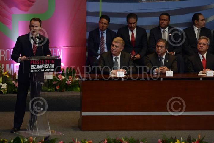 TOLUCA, ESTADO DE MÉXICO, 02MARZO2016.- En la conmemoración del 192 aniversario del Estado de México, Francisco Guzmán Ortiz, Jefe de la Oficina de la Presidencia, dijo hoy que es una entidad de hombres de Estado, como el Gobernador progresista Eruviel Ávila Villegas, y el Presidente transformador, Enrique Peña Nieto”. FOTO: PRESIDENCIA /CUARTOSCURO.COM
