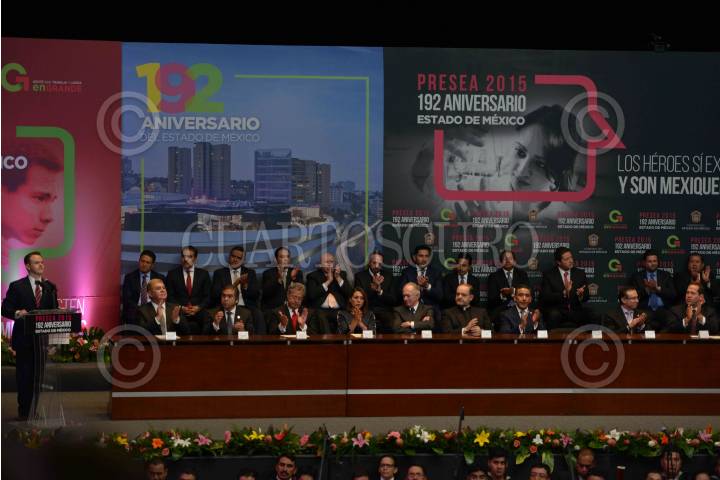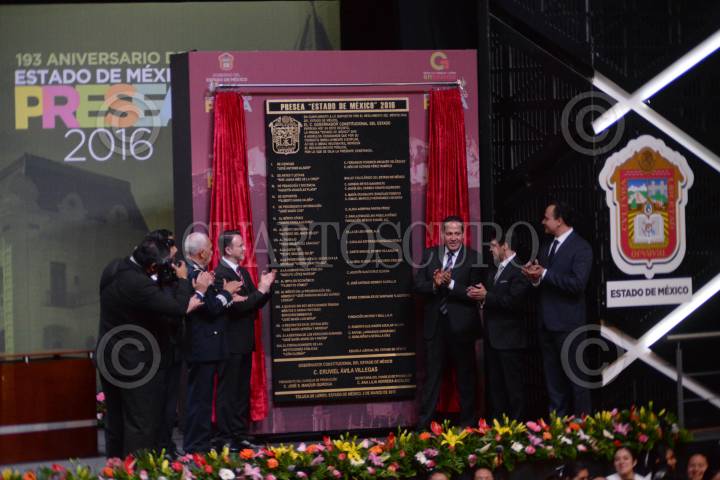 TOLUCA, ESTADO DE MÉXICO, 02MARZO2017.- Francisco Guzmán Ortiz, Jefe de la Oficina de la Presidencia de la República, y Eruviel Ávila, gobernador de la entidad, entregaron la Presea "Estado de México" 2016. FOTO: ARTEMIO GUERRA BAZ / CLAROSCURO.COM