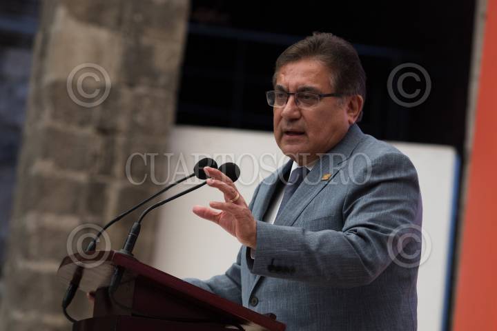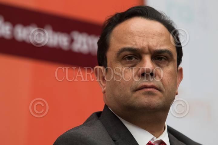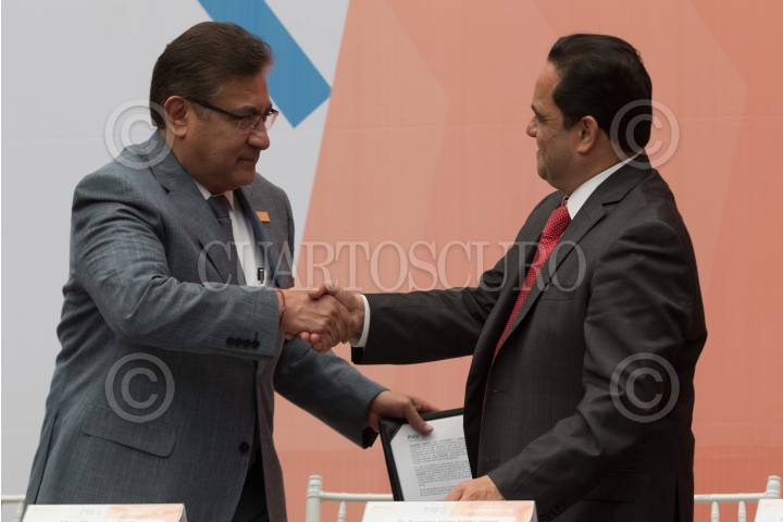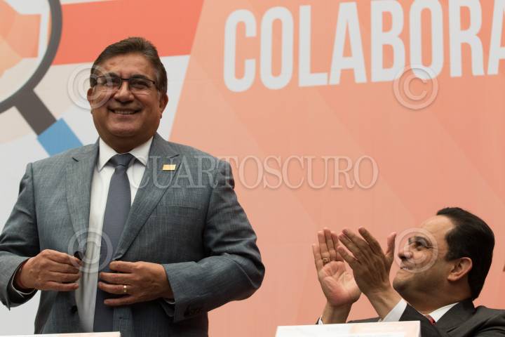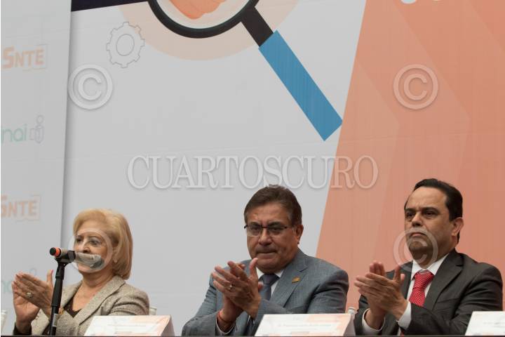 CIUDAD DE MÉXICO, 07OCTUBRE2019.- Alfonso Cepeda Sala, secretario general del SNTE, y Francisco Javier Acuña Llamas, comisionado presidente del Instituto Nacional de Transparencia, Acceso a la Información y Protección de Datos Personales (INAI), encabezaron la firma de un convenio de colaboración entre ambos organismos. FOTO: MOISÉS PABLO /CUARTOSCURO.COM