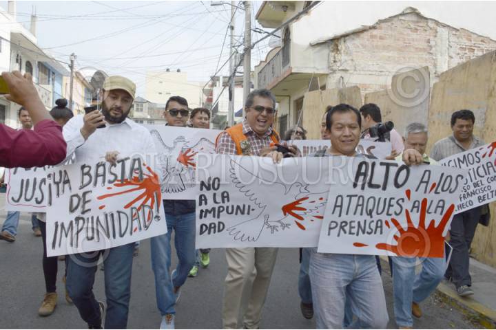 26ABRIL2016.- Periodistas y fotoperiodistas de esta ciudad marcharon para exigir justicia para Francisco Pacheco Beltrán, periodista asesinado en la ciudad de Taxco de Alarcón el pasado Lunes cuando se dirigía a su casa. FOTO: JOSÉ I. HERNÁNDEZ /CUARTOSCURO.COM