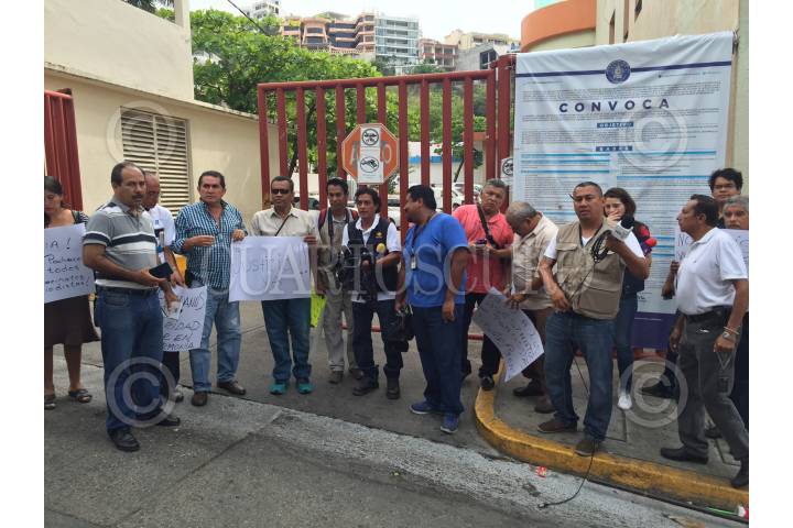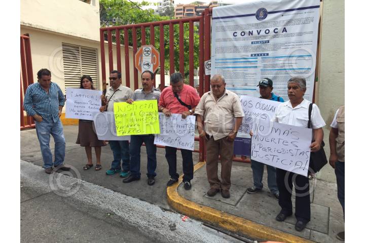 ACAPULCO, GUERRERO, 26ABRIL2016.- Comunicadores, reporteros e integrantes de la sección 25 del Sindicato Nacional de Redactores de la Prensa (SNRP) se manifestaron en la oficina regional de la Fiscalía General del Estado (FGE), en la colonia Progreso, para exigir el esclarecimiento del asesinato del periodista Francisco Pacheco Beltrán de Taxco de Alarcón, ocurrido la mañana del pasado 25 de abril, alrededor de las 6:45 horas, en la puerta de su vivienda, tras dejar a su hija en la estación de autobuses. FOTO: BERNANDINO HERNÁNDEZ /CUARTOSCURO.COM