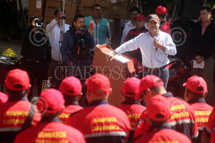 Entrega presidente municipal de Cuernavaca equipamiento a bomberos