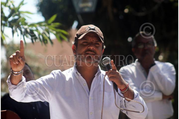 El alcalde de la capital sin respetar la distancia social para evitar contagios de Covid-19, recorre el mercado Adolfo López Mateos, la comitiva que le acompaña provoca gentíos.