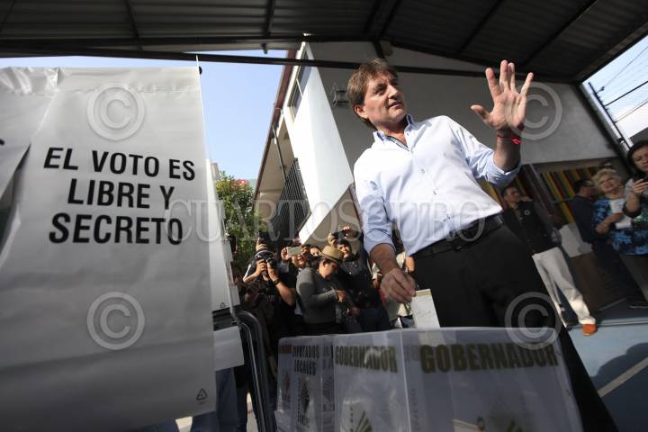 PACHUCA, HIDALGO, 05JUNIO2016.- Francisco Xavier Verganza, candidato del PAN a la Gubernatura del Estado, acudió desde temprano a emitir su voto en la jornada electoral de esta mañana. FOTO: ALBERTO ALLEC /CUARTOSCURO.COM