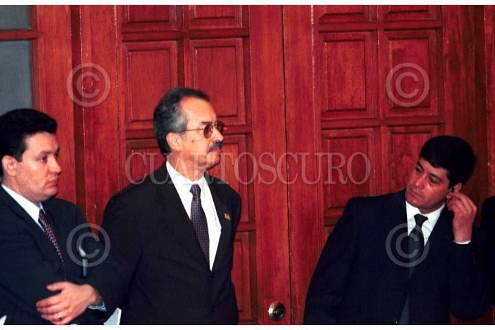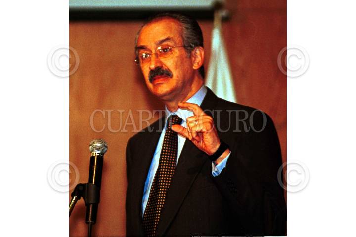 Francisco Gil Diaz, secretario de Hacienda, llegó tarde a la presentación del progama Apec México 2002. FOTO:Oswaldo Ramírez/CUARTOSCURO.COM