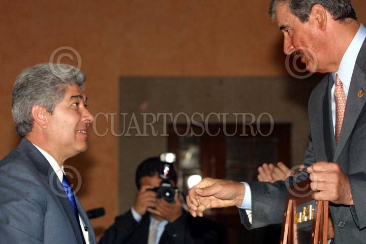 El apoyo ofrecido por el Estado de Jalisco fue prioritario para la realización de la pasada Olimpiada Juvenil. Por este motivo, su gobernador, Francisco Ramírez Acuña, recibió un reconocimiento de manos del presidente de la República, Vicente Fox Quesada. FOTO: Antonio González/ CUARTOSCURO.COM