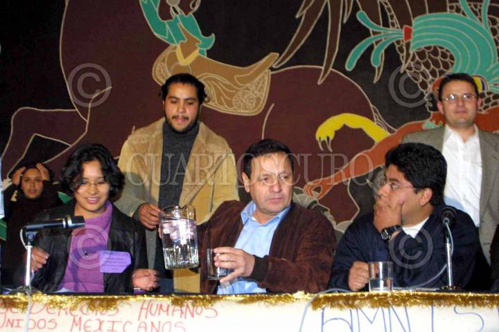 Francisco Hernández Juárez, miembro colegiado dela Unión Nacional de Trabajadores, durante la 5ta asamblea nacional y de elecciones refutó la política laboral foxista e hizo un llamado a las organizaciones sindicales para hacer frente a propuesta a la reforma laboral que llevó cabo la CTM, la Secretaría del Trabajo y el sector empresarial. FOTO: Juan Pablo Zamora/CUARTOSCURO.COM