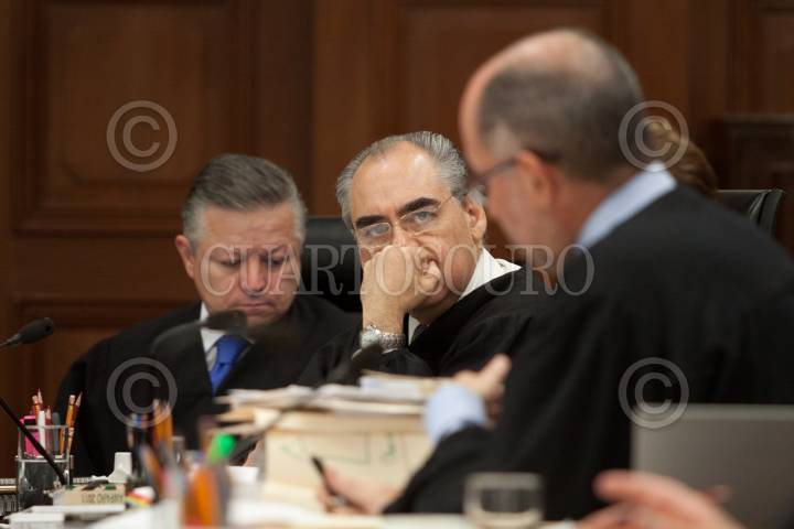 MÉXICO, D.F., 27SEPTIEMBRE2011.- El ministro Fernando Franco González Salas quien enacbeza el proyecto que plante invalidar el artículo séptimo párrafo primero de la Constitución bajacaliforniana, el cual protege el derecho absoluto a la vida desde la concepción, escucha con atención a sus colegas durante la sesión en la que se discute este proyecto. FOTO: MOISÉS PABLO/CUARTOSCURO.COM