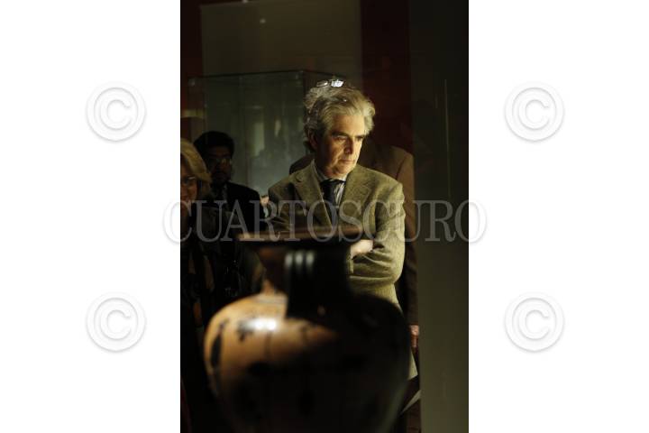 MÉXICO, D.F., 28ENERO2014.- Rafael Tovar y de Teresa, presidente del Conaculta, recorrió la exposición "Keramiká materia divida de la antigua Grecia", la cual iniciará las celebraciones por el 75 aniversario del Instituto Nacional de Antropología e Historia. FOTO: MOISÉS PABLO /CUARTOSCURO.COM