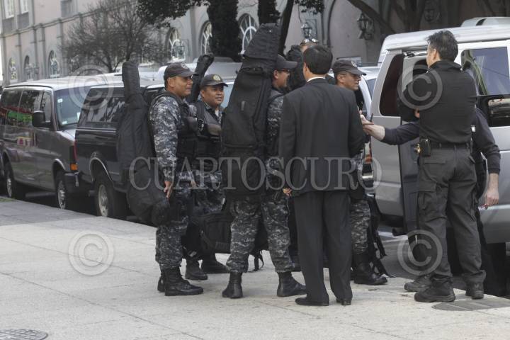 MÉXICO, D.F., 05MARZO2012.- Elementos del Estado Mayor Presidencial hacen revisiones a todos los vehículos que llegaban al hotel Four Seasons, durante la Reunión de Joe Biden, vicepresidente de Estados Unidos. FOTO: JUAN PABLO ZAMORA /CUARTOSCURO.COM