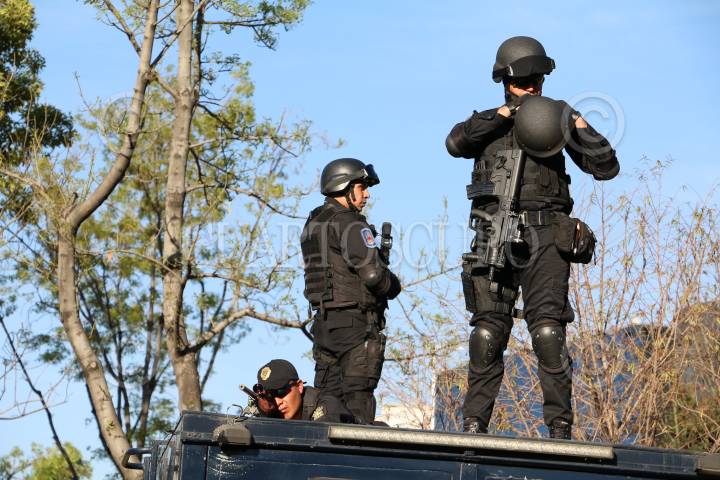 MÉXICO, D.F., 08ENERO2016.- Elementos de grupos tácticos y francotiradores de Fuerza de Tarea de la SSP-DF, blindaron las instalaciones de la SEIDO después del anuncio de la captura de Joaquin Guzmán Loera alias el “Chapo” . FOTO: SAÚL LÓPEZ /CUARTOSCURO.COM