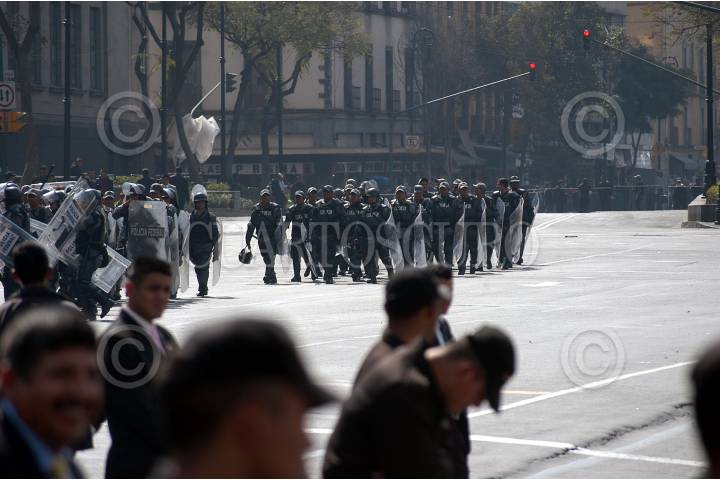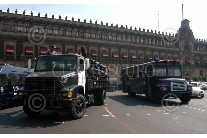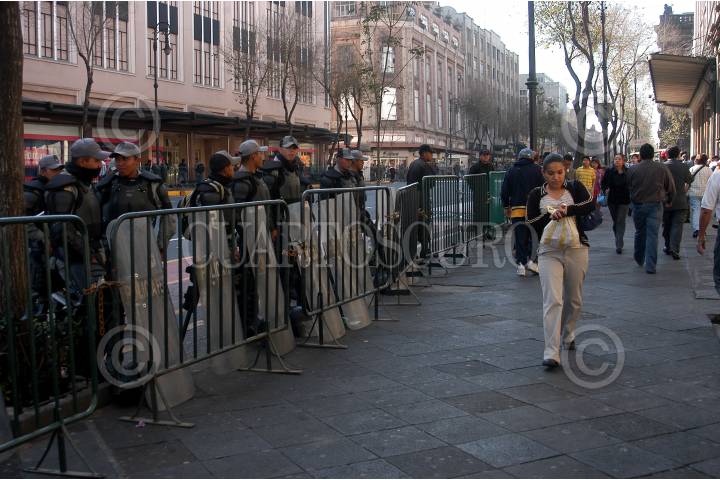 MÉXICO D.F. 22ENERO2007.- En la periferia del Palacio Nacional y calles aledañas del Centro Historico se realizo un operativo seguridad, implementado por elementos del estado mayor y policía federal preventiva PFP, esto por la asitencia del Presidente de la república a la XXI sesión de Consejo Nacional de Segurida Pública. FOTO: GUILLERMO PEREA /CUARTOSCURO.COM