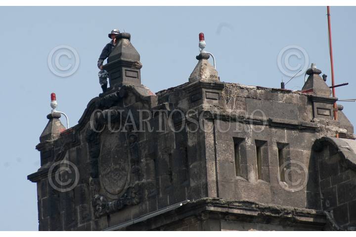 MÉXICO D.F. 22ENERO2007.- Francotiradores en las torres del Palacio Nacional durante el operativo seguridad, implementado por elementos del estado mayor y policía federal preventiva PFP, esto por la asitencia del Presidente de la república a la XXI sesión de Consejo Nacional de Segurida Pública. FOTO: GUILLERMO PEREA /CUARTOSCURO.COM
