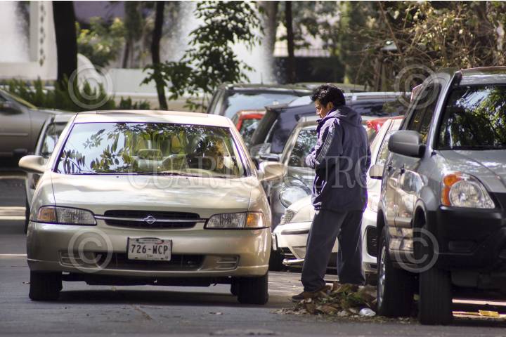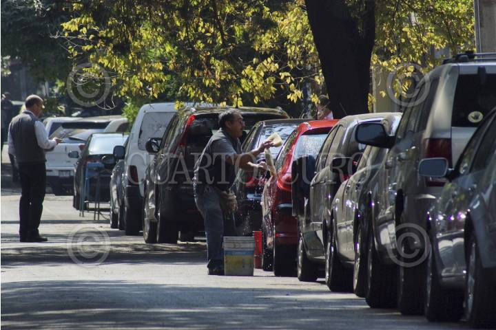 MÉXICO, D.F., 17ENERO2013.- Personas que se dedican a cuidar y lavar automóviles en las calles de la Condesa. El próximo domingo 20 de enero se realizará la consulta ciudadana para decidir la instalación de Parquimetros en las colonias Condesa y Roma. En las calles se pueden apreciar distintas mantas con la invitación a votar por la aceptación y algunas otras por la negativa. FOTO: ADOLFO VALTIERRA /CUARTOSCURO.COM