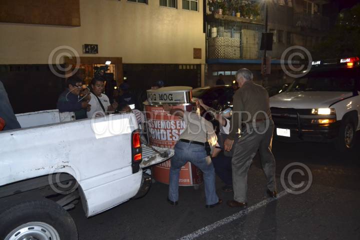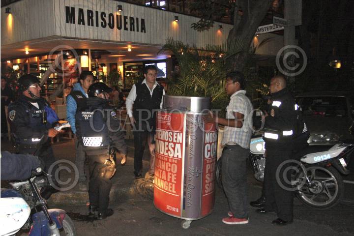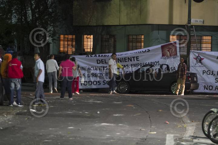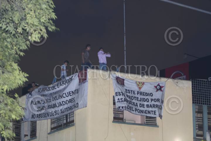 MÉXICO, D.F., 31OCTUBRE2013.- En las calles de Benjamín Hill y Altata de la colonia Condesa, colocaron una mantas a fuera del edificio que habitan después de arrojar piedras a los policías que realizaban un operativo contra franeleros de está zona. FOTO: GUILLERMO PEREA /CUARTOSCURO.COM