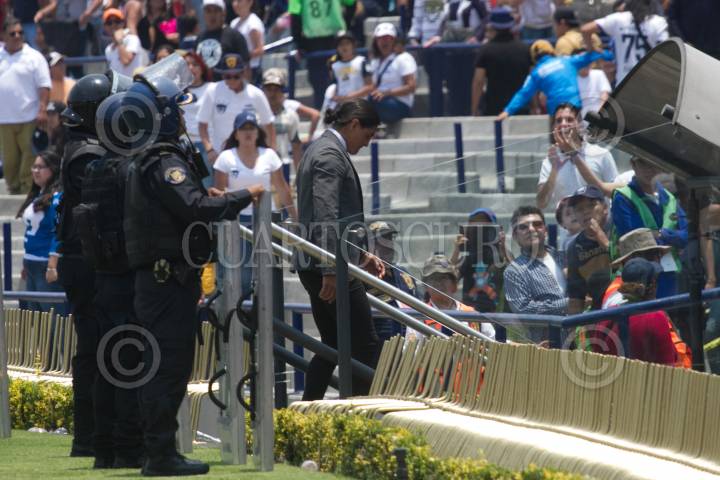 CIUDAD DE MÉXICO, 07MAYO2017.- El técnico universitario Francisco Palencia sale entre abucheos de los aficionados al terminar el juego entre los Pumas en contra del Puebla, quienes ganaron por la mínima diferencia. Los de la UNAM no lograron pasar a la liguilla del fútbol mexicano. FOTO: MOISÉS PABLO /CUARTOSCURO.COM