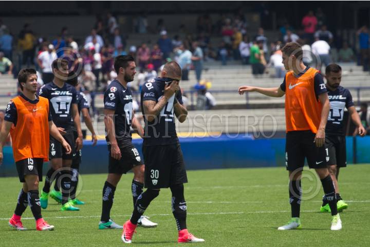 CIUDAD DE MÉXICO, 07MAYO2017.- Los Pumas de la UNAM perdieron 1-0 ante la Franja del Puebla, en el estadio Olímpico. Los universitarios cayeron ante su afición quienes los abuchearon al final, ya que la escuadra no pudo llegar a la liguilla. FOTO: MOISÉS PABLO /CUARTOSCURO.COM