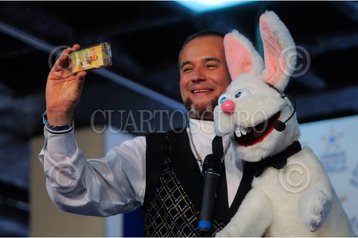 MÉXICO, D.F., 08ABRIL2011.- El Mago Frank y su conejo Blas develaron las huellas la tarde de hoy en Plaza de las Estrellas. FOTO: FRANCISCO RODRIGUEZ/CUARTOSCURO.COM