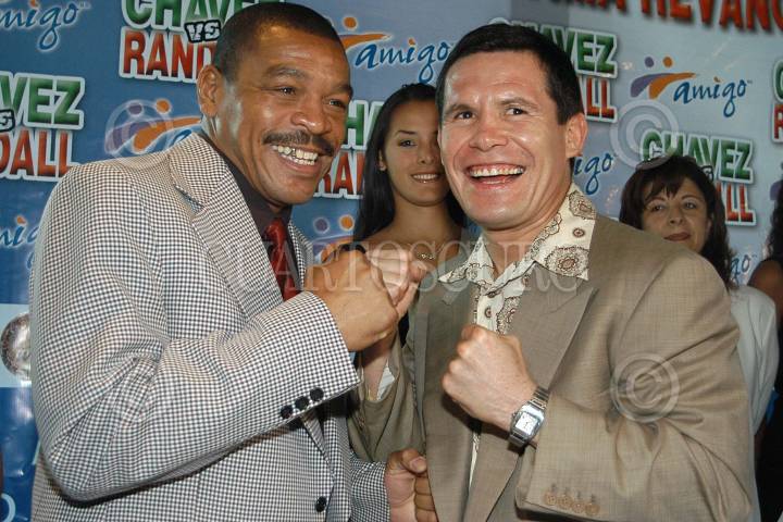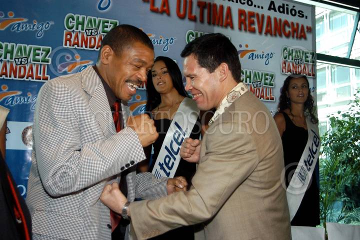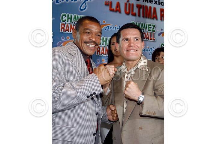 MEXDF14ABRIL2004.- Los boxeadores Frankie Randall y Julio César Chávez, durante el anuncio de la pelea ¨La Ultima Revancha¨, que se realizara el 22 de mayo en la plaza de toros México. FOTO: Germán Romero/CUARTOSCURO.COM