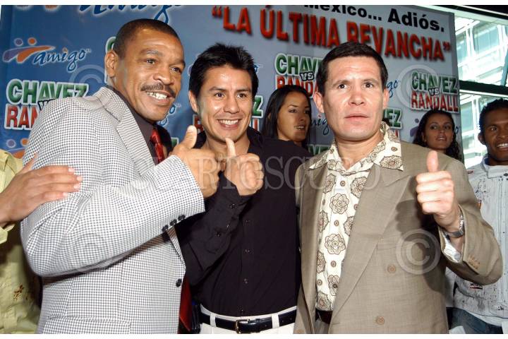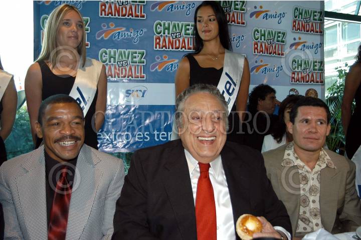 MEXDF14ABRIL2004.- Los boxeadores Frankie Randall, Miguel Angel Gonzalez y Julio César Chávez, durante el anuncio de la pelea ¨La Ultima Revancha¨. FOTO: Germán Romero/CUARTOSCURO.COM