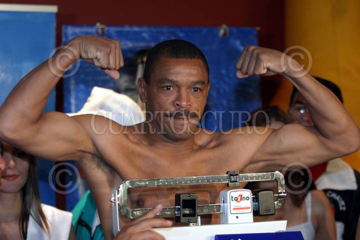 México, D.F., 21MAYO2004.- Frankie Radall se mostró satisfecho durante la ceremonia de pesaje, previo a su encuentro con Julio Cesar Chávez. El encuentro boxístico se realizá en la Plaza México. FOTO: Moisés Pablo/CUARTOSCURO.COM