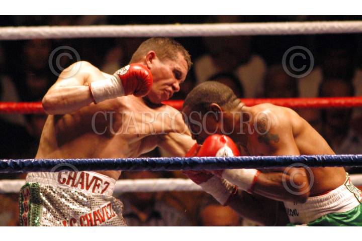 MEXDF23MAYO2003.- El boxeador Julio Cesar Chavez, ex campeón mundial de peso ligero se despidio de los cuadrilateros con una pelea ante Frankie Randall en la plaza de toros México. El peleador sonorense se adjudico el triunfo. FOTO: Germán Romero/CUARTOSCURO.COM