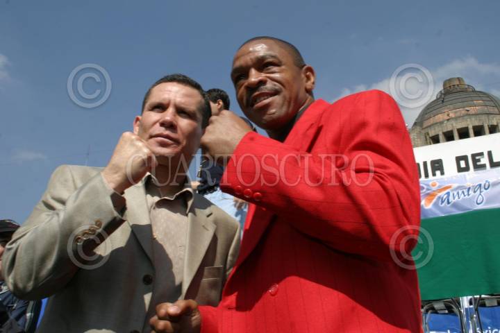 México, D. F. 15 Mayo 2004.- Julio César Chávez y Franky Randall festejaron el día del boxeador en el monumento a la Revolución. FOTO: Nelly Salas/CUARTOSCURO.COM