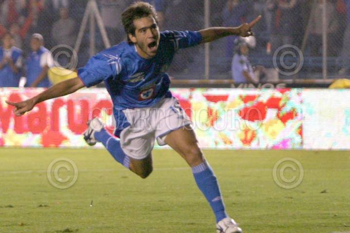 MEXICO D.F 15 ENERO 2005.- El jugador Cesar "Chelito" Delgado festeja su primer gol en el segundo tiempo en el iniciò de la Jornada uno del Torneo de Clausura 2005. FOTO: Eunice Adorno/CUARTOSCURO.COM