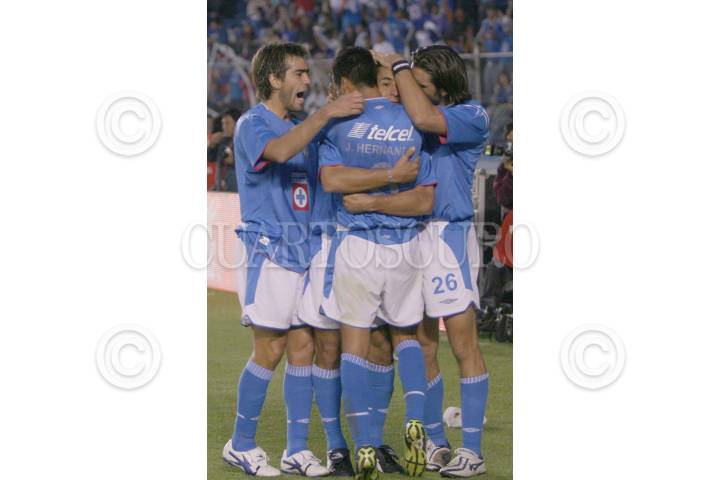 MEXICO D.F 15 ENERO 2005.- Los jugadores del Cruz Azul celebran su primer gol al equipo de Puebla en la Jornada uno del Torneo de Clausura 2005 en donde La Màquina Celeste del Cruz Azul gano 3-1. FOTO: Eunice Adorno/CUARTOSCURO.COM