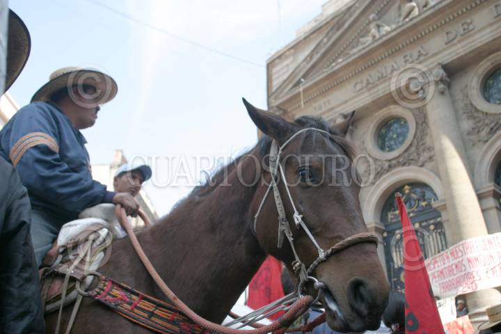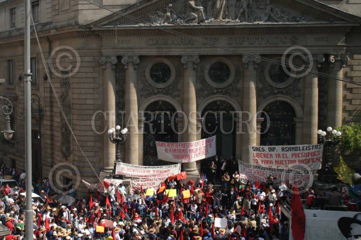 MEXICO D.F 11 ENERO 2005.- Integrantes del Frente Popular Fransisco Villa se manifestaron afuera de la Asamblea Legislativa del D.F para exigir a diputados locales liberen presupuesto para más fuentes de empleo y ya no existan los trabajadores eventuales. FOTO: Eunice Adorno/CUARTOSCURO.COM