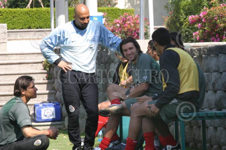 MEXICO, D.F. 17ENERO2005.- Moisés Muñoz, Oscar el conejo¨ Pérez, Francisco ¨kikin¨ Fonseca, integrantes de la selección nacional mexicana de futbol, al término de su entrenamiento en Pegaso. FOTO: Sandra Perdomo/CUARTOSCURO.COM