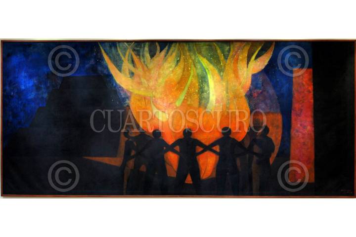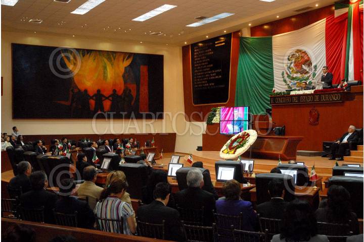 DURANGO, DURANGO, 10ABRIL2010.- El mural "Fraternidad" del artista Oaxaqueño Rufino Tamayo fue develado ante el pleno del Congreso del estado, la obra permanecerá en esta ciudad hasta el año 2014 después volverá a la sede de las naciones unidas en Nueva York. Esto es posible gracias a las gestiones realizadas por Jorge Herrera Delgado presidente de la gran comisión del estado de Durango, a la secretaria de Relaciones Exteriores, al INBA y a la ONU. FOTOS: OCTAVIO ZALDIVAR/CUARTOSCURO.COM