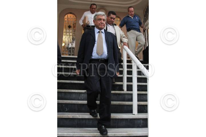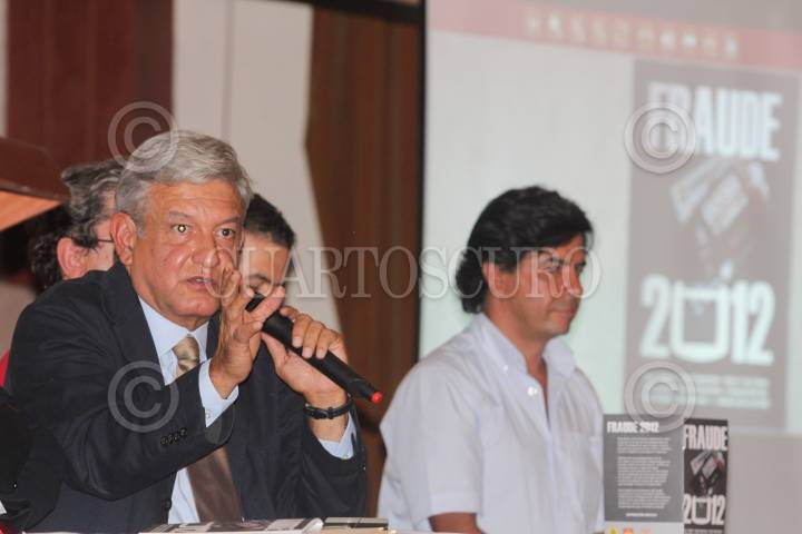 MÉXICO, D.F., 26JULIO2012.- Andrés Manuel López Obrador, ex candidato del PRD, PT y Movimiento Ciudadano, ofreció una conferencia de prensa a medios de comunicación donde informo que su planteamiento de invalidar la elección y poner un presidente interino, esta apegado al marco de la ley, ya que se encuentra contemplado en los artículos 84 y 85 de la Carta Magna. FOTO: SAÚL LÓPEZ /CUARTOSCURO.COM
