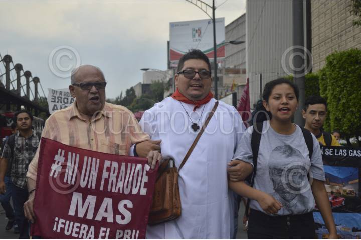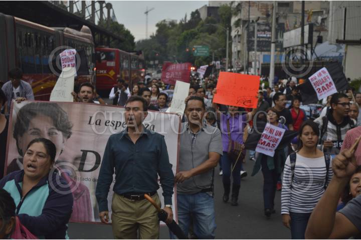 CIUDAD DE MÉXICO, 07JUNIO2017.- Integrantes del partido MORENA se manifestaron frente a la sede nacional del Partido Revolucionario Institucional (PRI) para exigir un recuento de votos de los comicios que se vivieron el pasado domingo en donde se eligió a nuevo gobernador, ellos señalan que su candidata Delfina Gómez Álvarez ganó la contienda. FOTO: SELENE PACHECO /CUARTOSCURO.COM