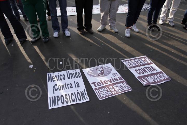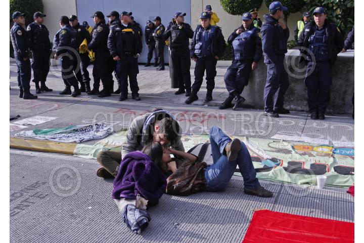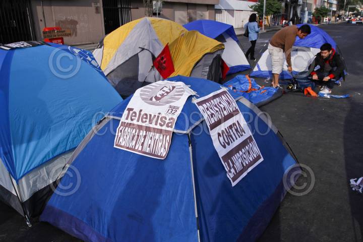 MÉXICO D.F., 27ULIO2012.- Jóvenes del movimiento #YoSoy132 mantienen desde anoche una toma simbólica de las instalaciones de Televisa Chapultepec, en contra de lo que denunciaron como la imposición de Enrique Peña Nieto como Presidente de la República. FOTO: ISAAC ESQUIVEL /CUARTOSCURO.COM