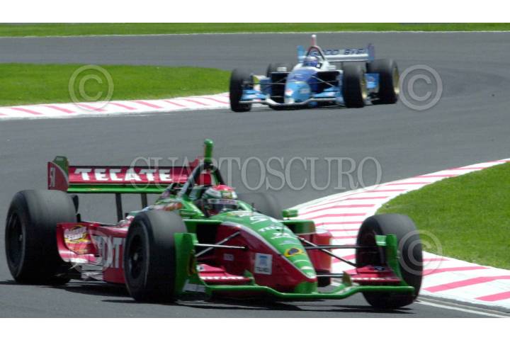 El piloto mexicano Adrián Fernández es perseguido por el canadiense Paul Tracy en el Gran Premio de México. FOTO: Jorge Alvarado/CUARTOSCURO.COM