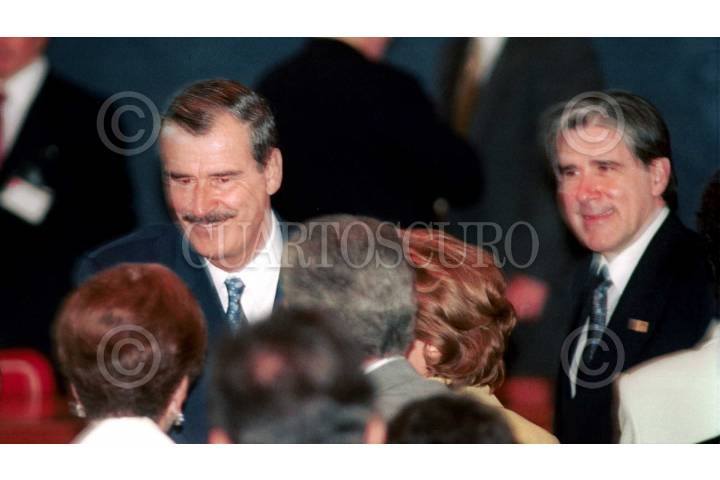 El presidente Vicente Fox, encabezo la la Clausura de la XV Asamblea General de Asociados de la Fundación Mexicana para la Salud, lo acompaña Julio Frenk, secretario de Salud. FOTO:Oswaldo Ramírez/CUARTOSCURO.COM