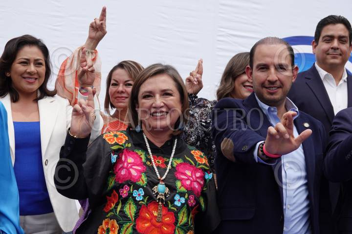 La diputada Margarita Zavala y la senadora Josefina Vasquez Mota, mostraron su apoyo a Xóchitl Gálvez, representante para la candidatura de presidencia por Frente Amplio por México, durante la entrega de su constancia en el Ángel de la Independencia