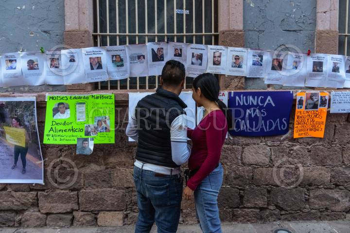 Integrantes del Frente Nacional Mujeres contra Deudores Alimentarios hicieron tendedero de Deudores alimentarios en el centro histórico de Zacatecas, esto con el propósito de visibilizar el incumplimiento de padres de familia.