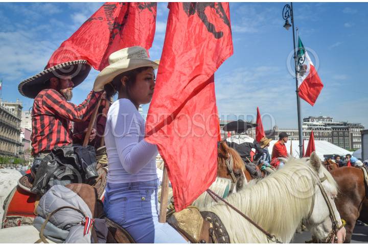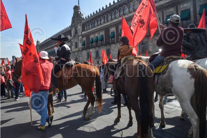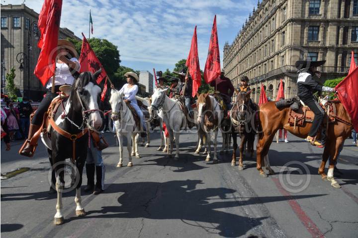 Integrantes del Frente Popular Francisco Villa realizaron una marcha con motivo del 99 aniversario luctuoso de Francisco Villa. La marcha partió del zócalo capitalino rumbo al monumento a la Revolución.